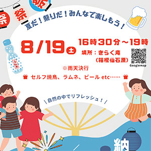 箱根仙石原の研修施設「きらく庵」にて、納涼祭を開催します!